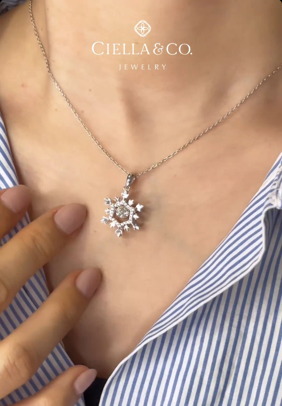 Ide hadiah kalung liontin : Snowflake Dancing Stone Necklace