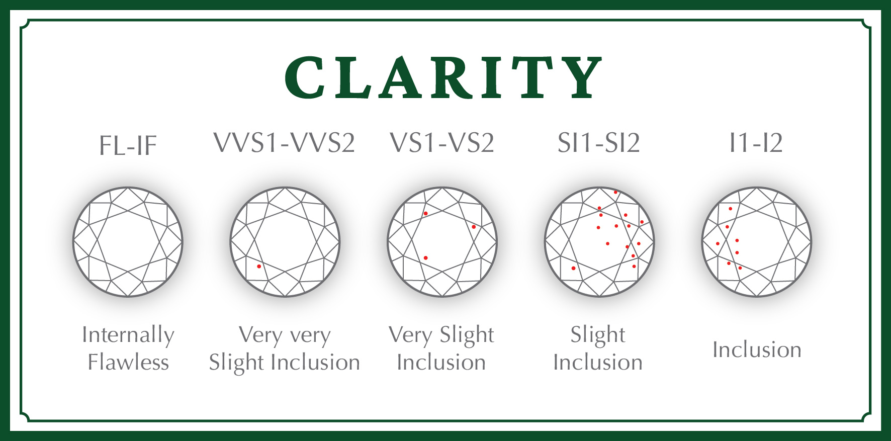Nilai kejernihan pada batu berlian dapat terbagi menjadi beberapa kategori: