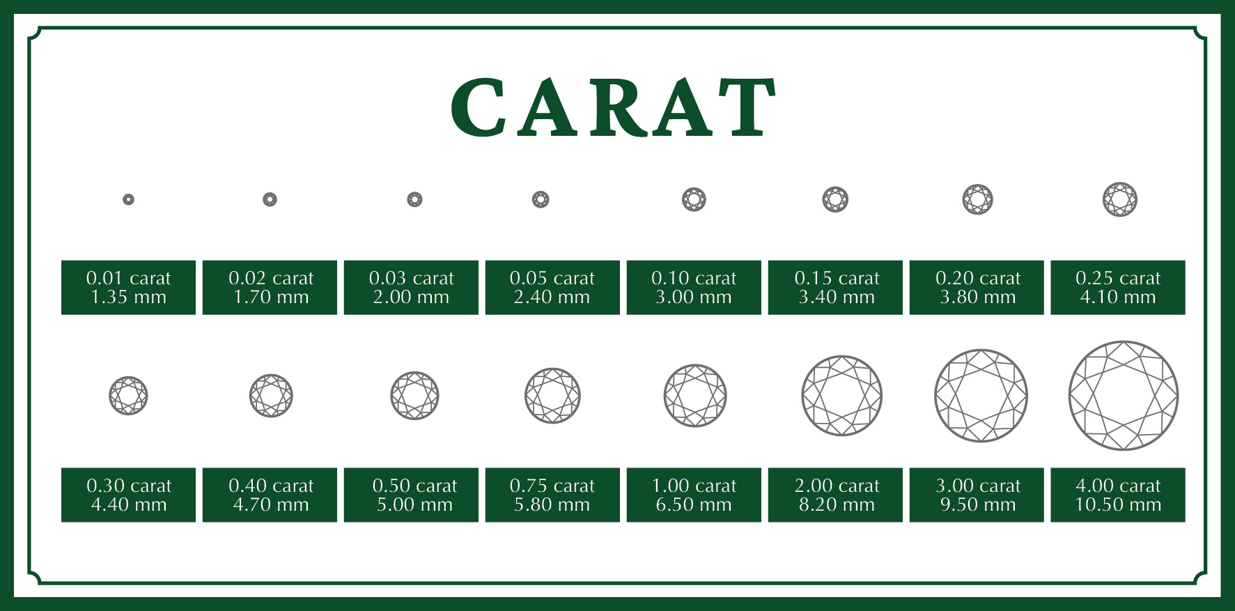 Berat karat pada berlian mengacu pada ukuran berat dari batu berlian tersebut. Berat karat sebenarnya tidak menentukan nilai berlian. Misalnya, dua batu moissanite satu karat dapat sangat bervariasi harganya jika kita mempertimbangkan kejernihan, warna, dan potongannya. Seperti batu berlian pada umumnya, moissanite dengan ukuran yang besar dengan kualitas terbaik juga sulit ditemukan. Tetapi di Ciella & Co. tidak mustahil jika kamu ingin mewujudkan desain perhiasan yang berani dengan batu moissanite berkarat cukup besar, dengan tetap mempertahankan kualitas kejernihan, warna dan potongan berlian moissanite yang terbaik.